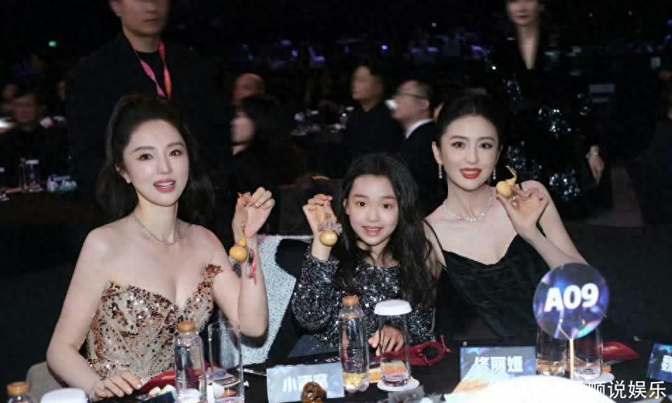 在爱奇艺尖叫之夜现场,小酒窝坐在明星席间,左手被妈妈董璇搂着,右手边是佟丽娅,斜前方就是杨幂。杨幂主动凑过来与她贴脸合影,温柔捏脸互动,画面甜度爆表。更巧的是,她邻座正是魏大勋,意外促成杨幂与魏大勋的近距离同框,成为整场晚会的“隐形名场面制造者”。